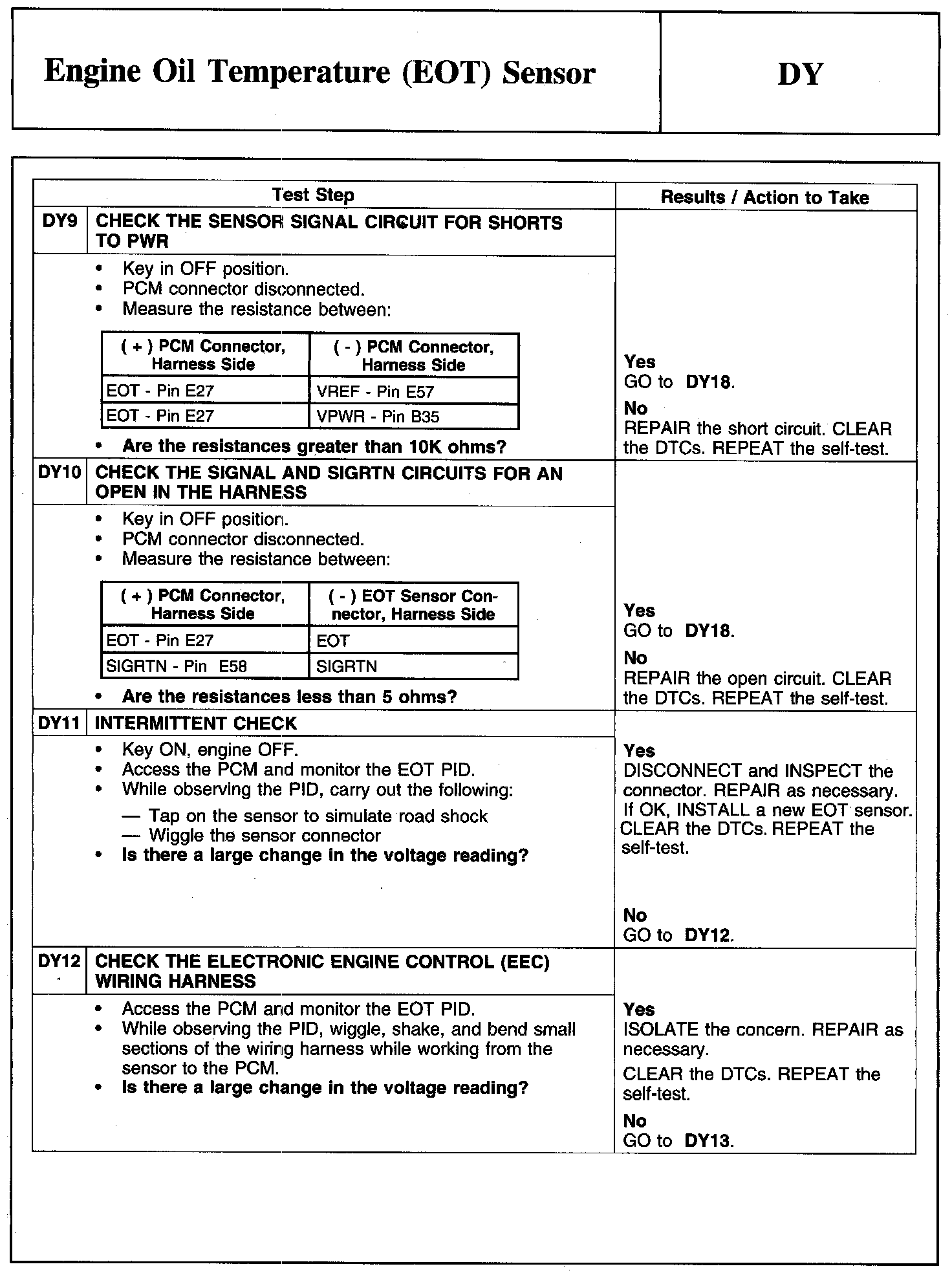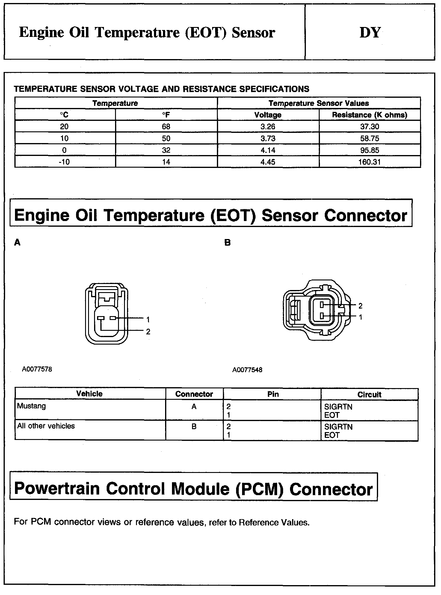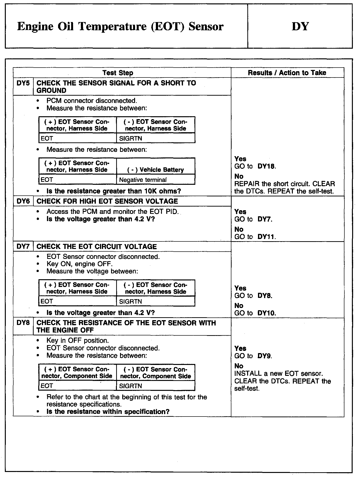 Tests DY: Engine Oil Temperature (EOT) Sensor