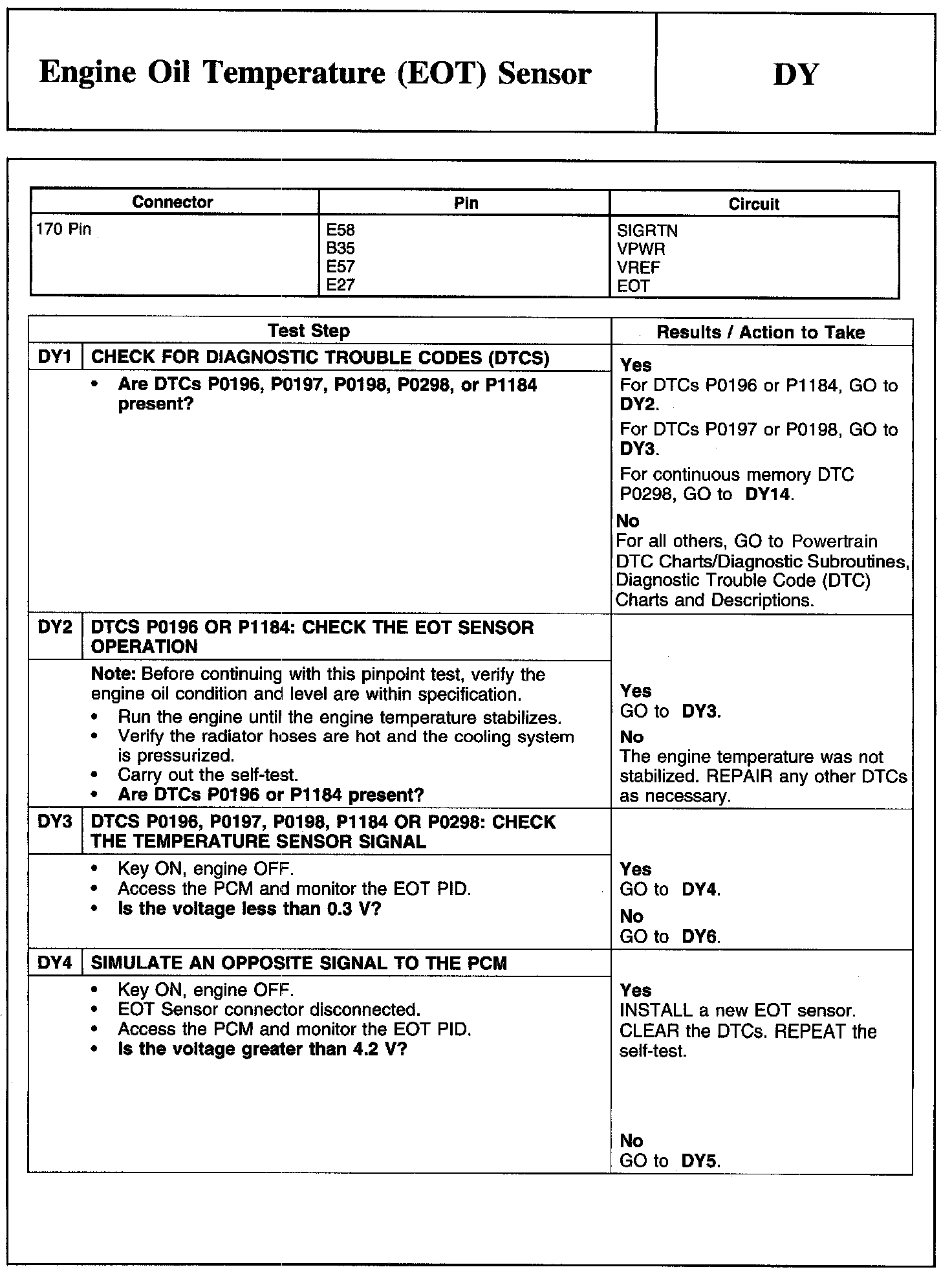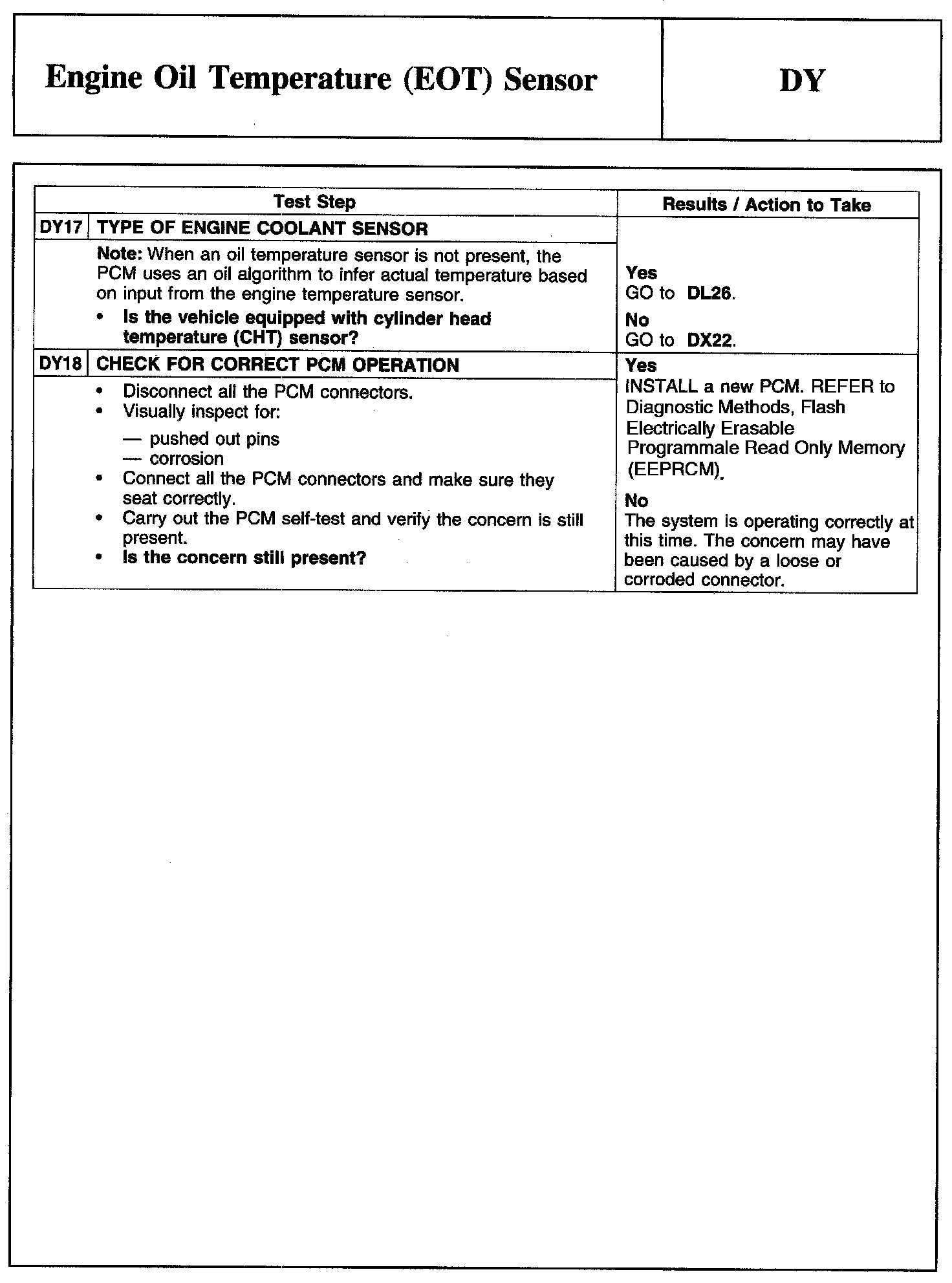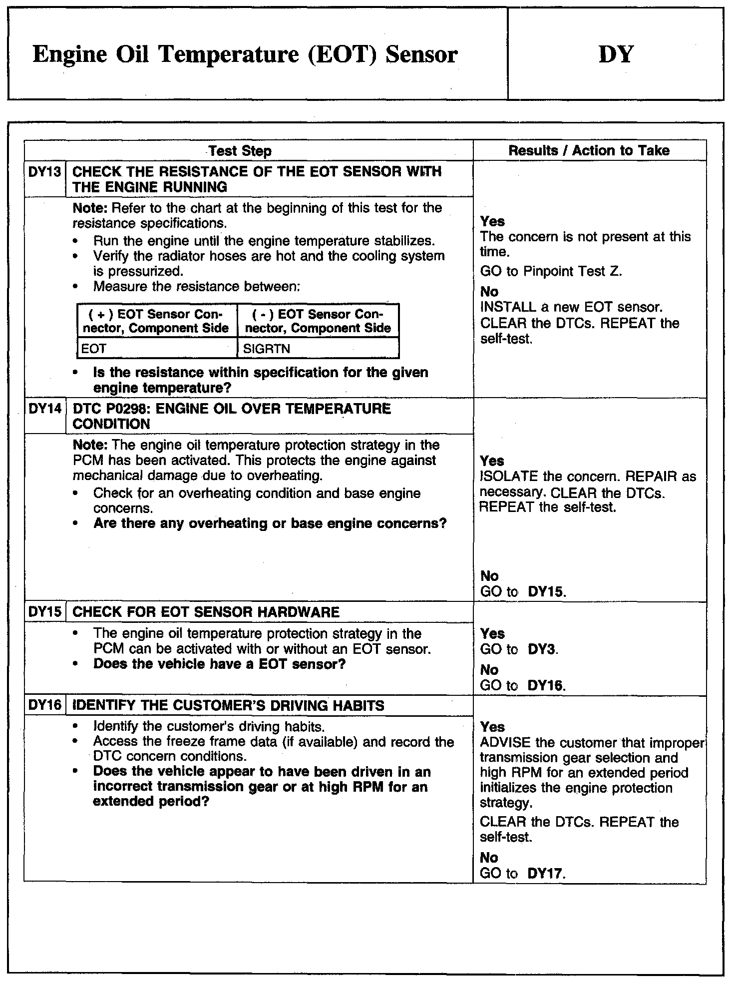 Tests DY: Engine Oil Temperature (EOT) Sensor