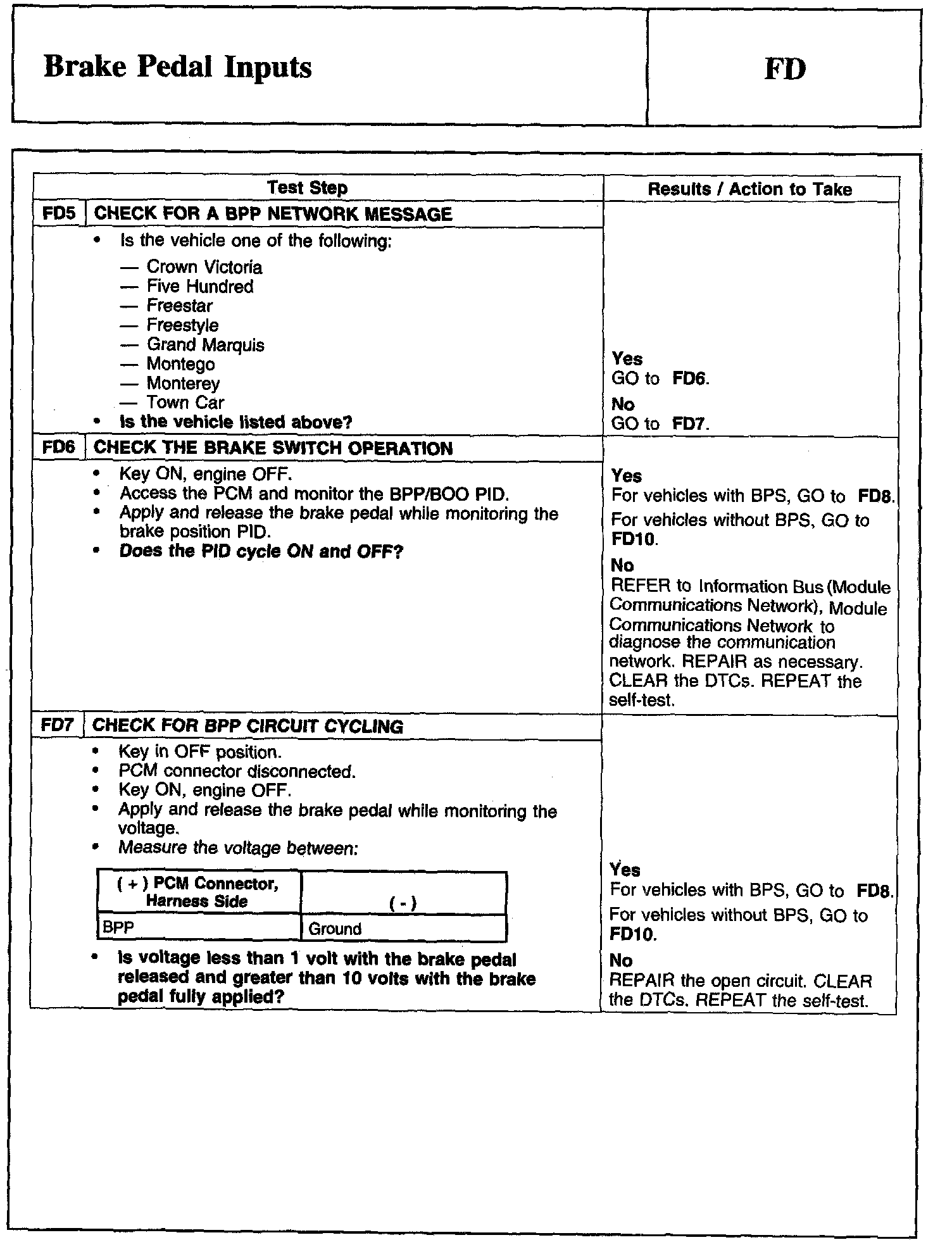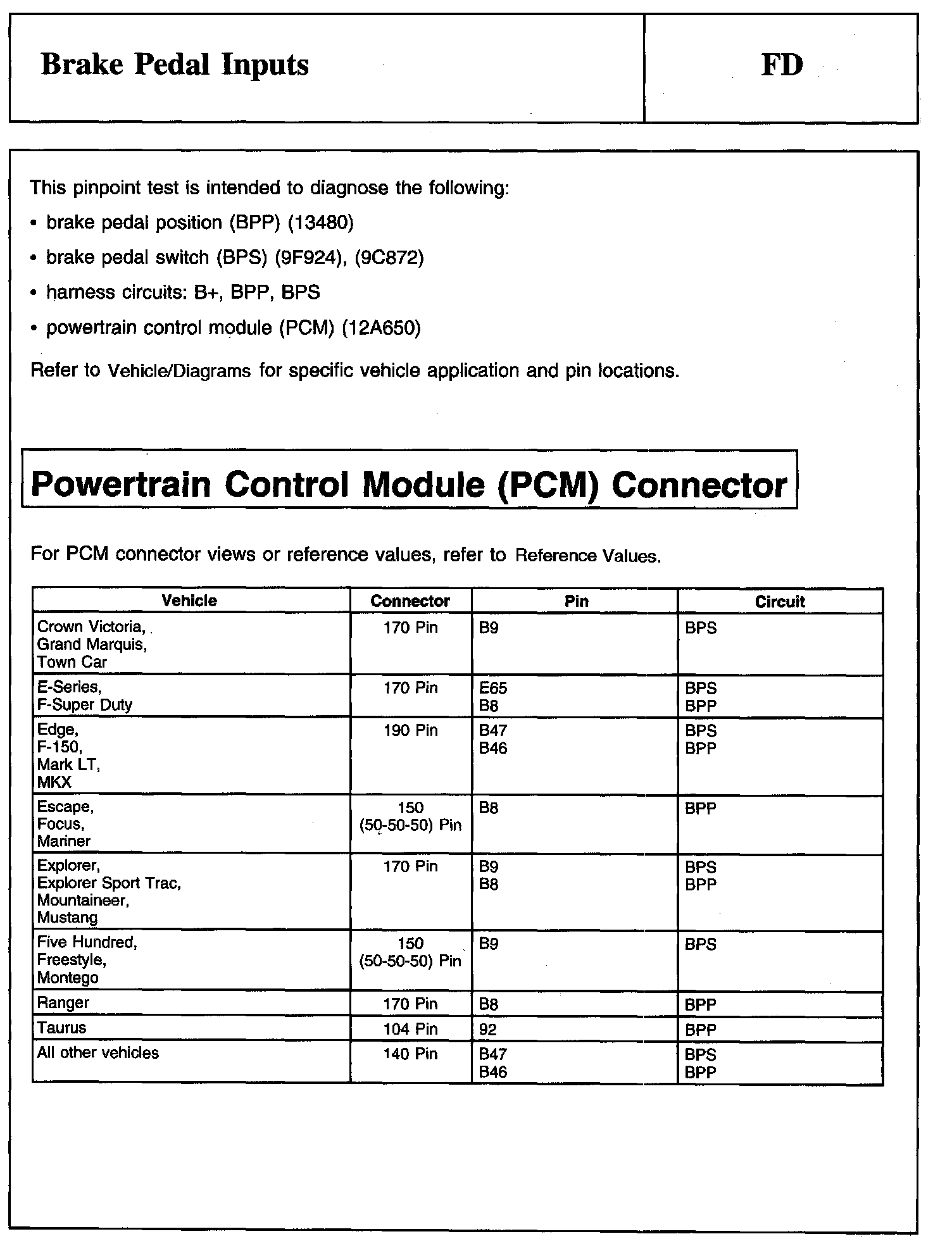 PINPOINT TEST FD: BRAKE PEDAL INPUTS