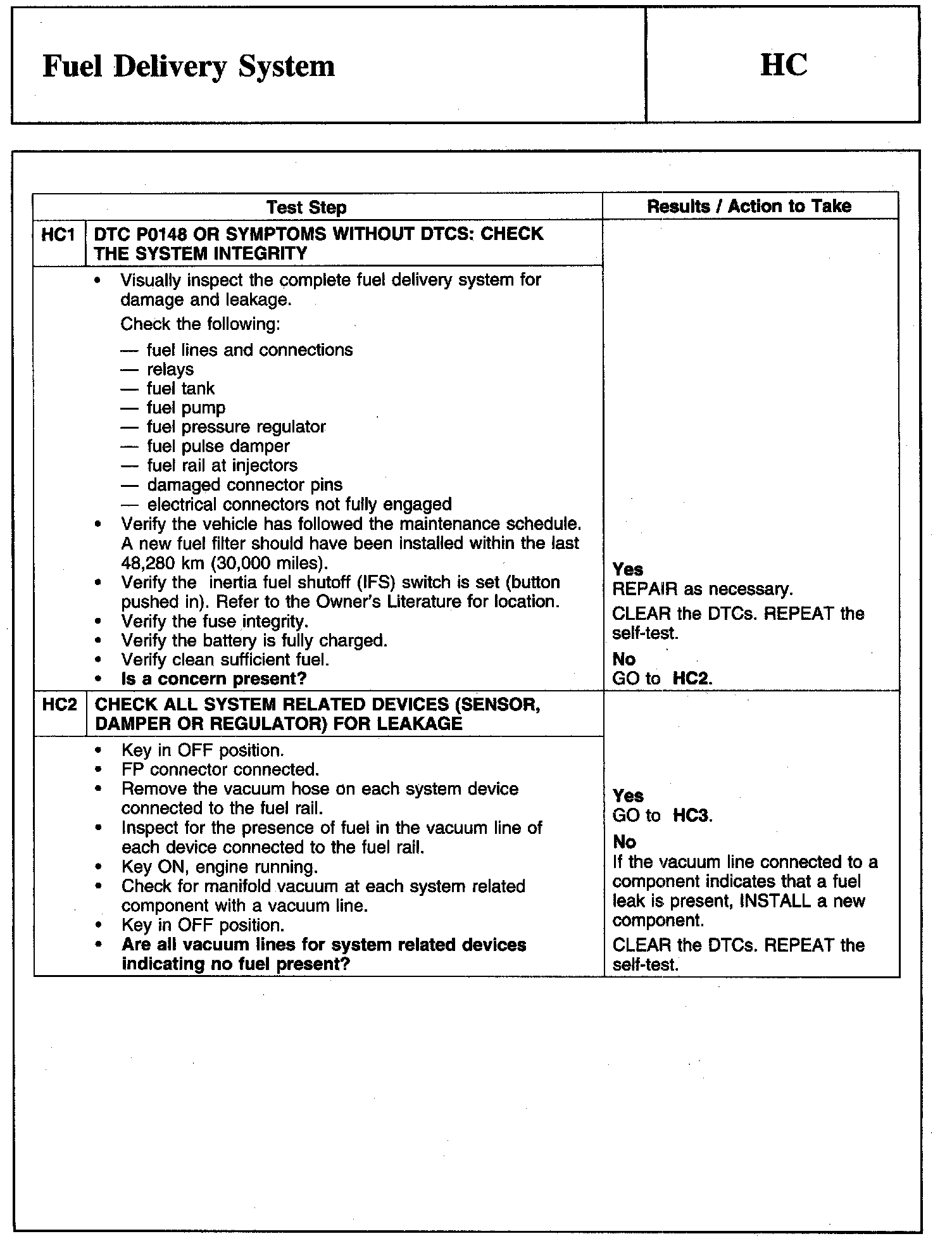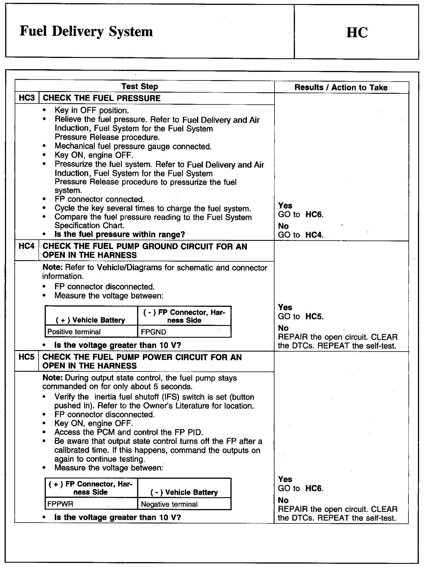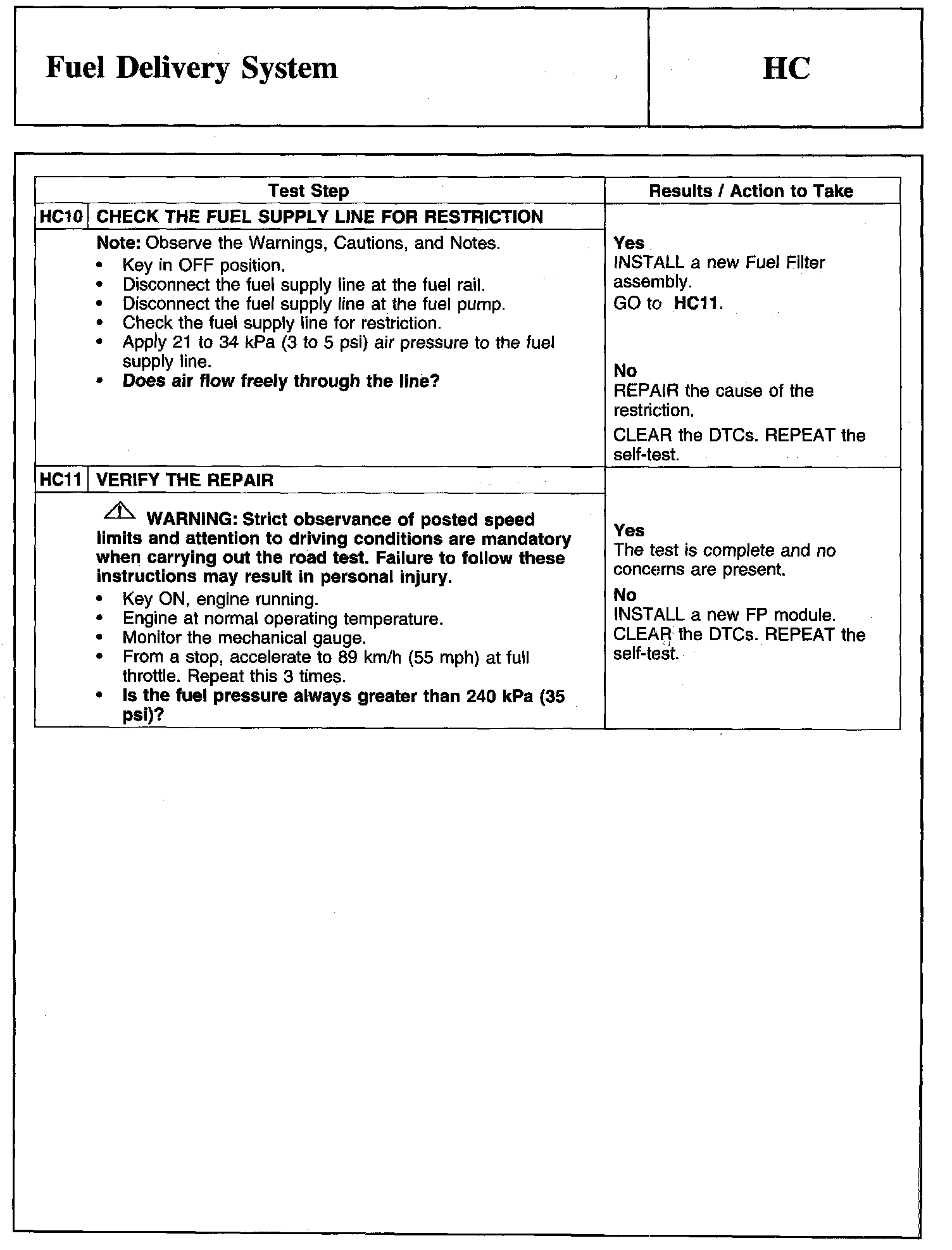 Tests HC: Fuel Delivery System