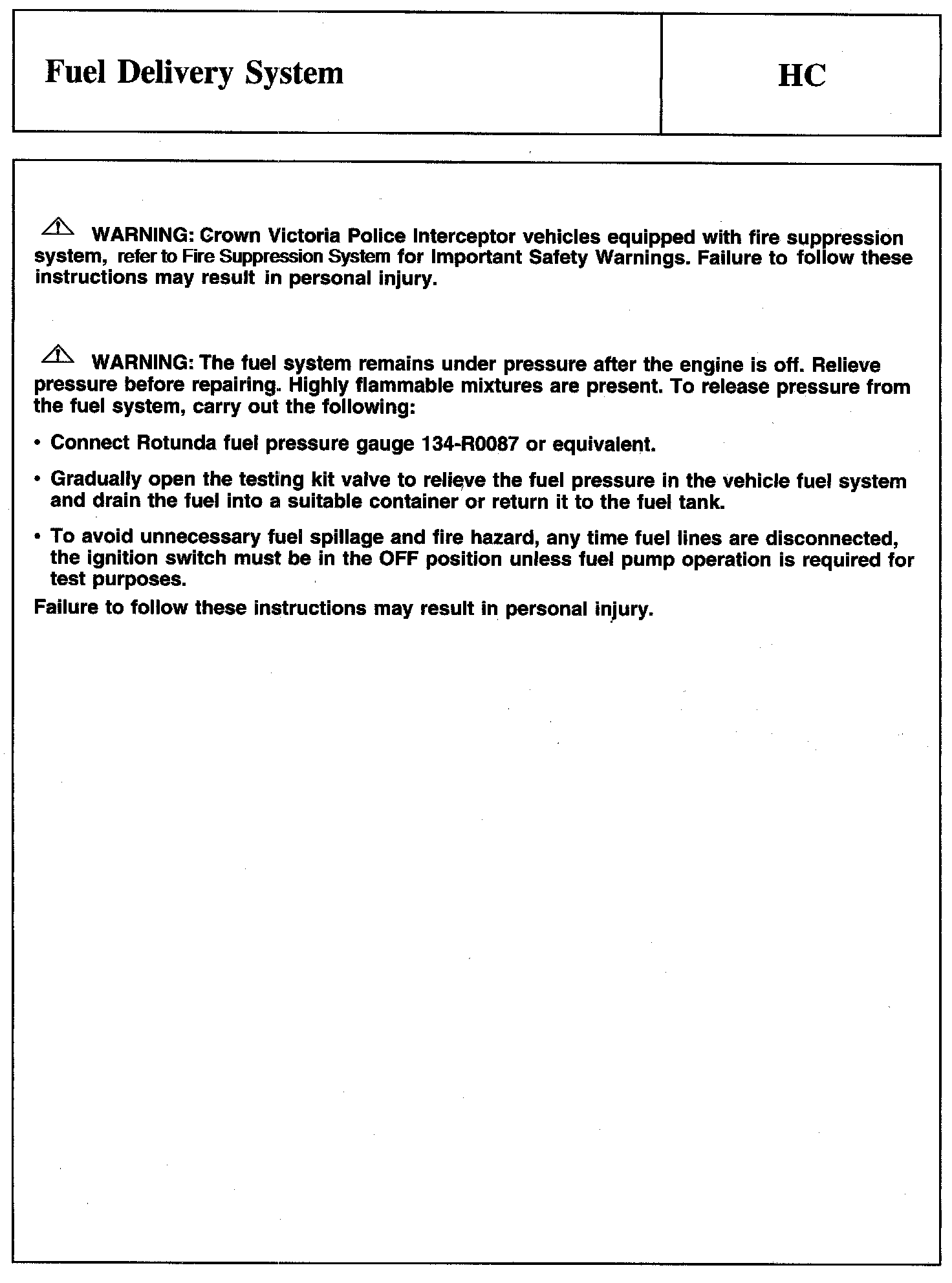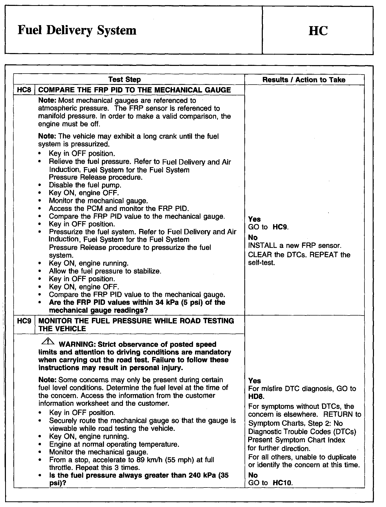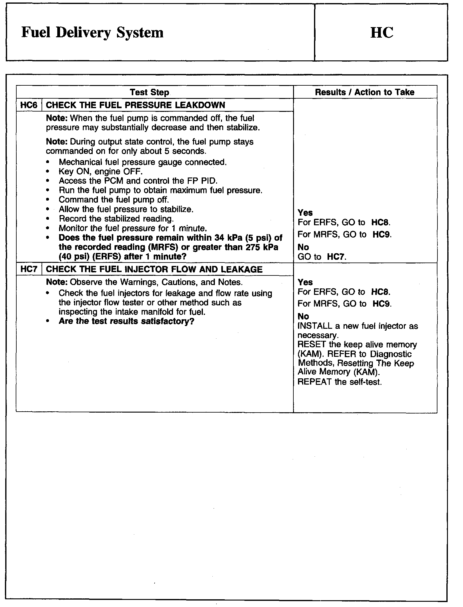 Tests HC: Fuel Delivery System