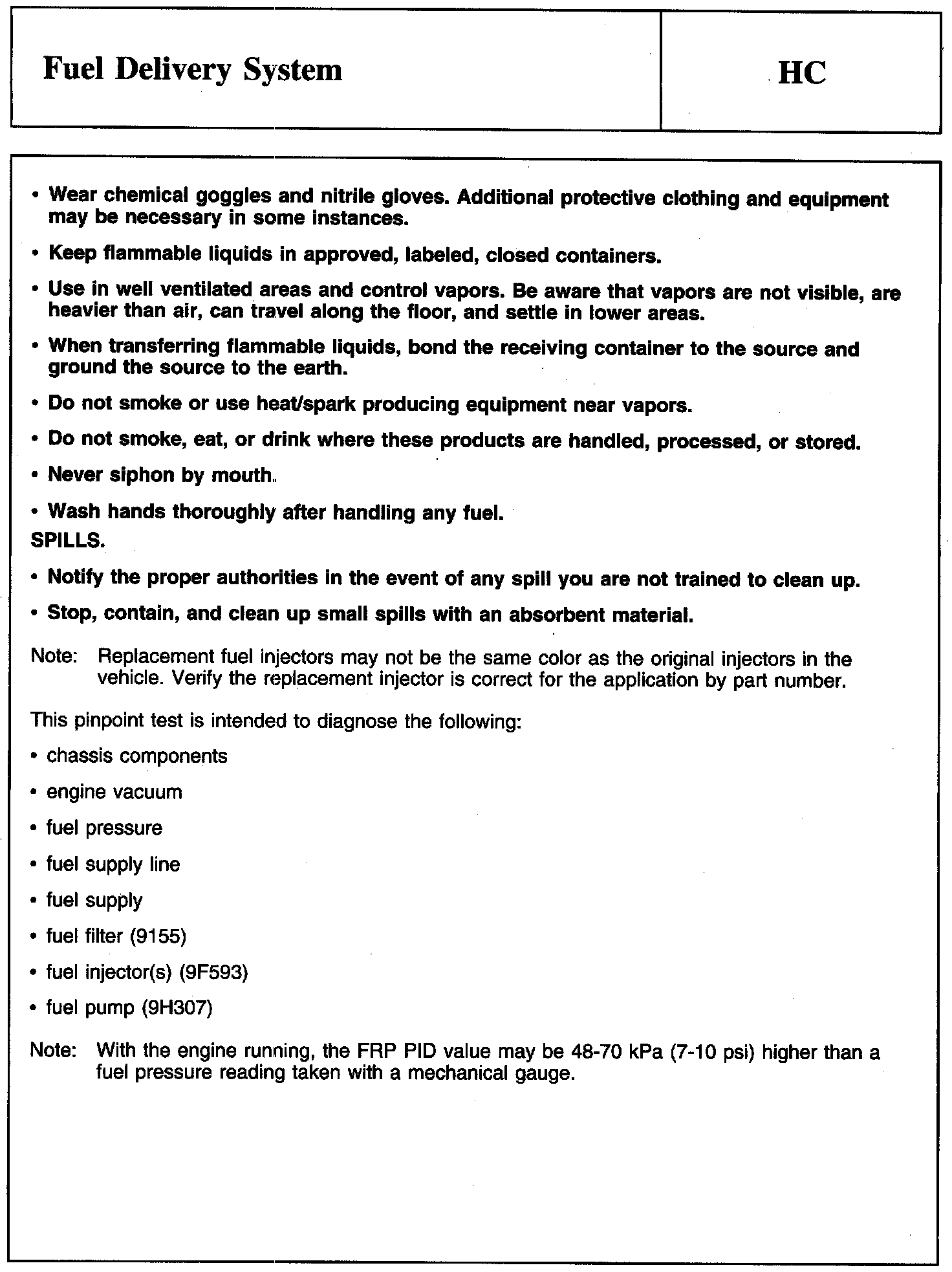 PINPOINT TEST HC: FUEL DELIVERY SYSTEM