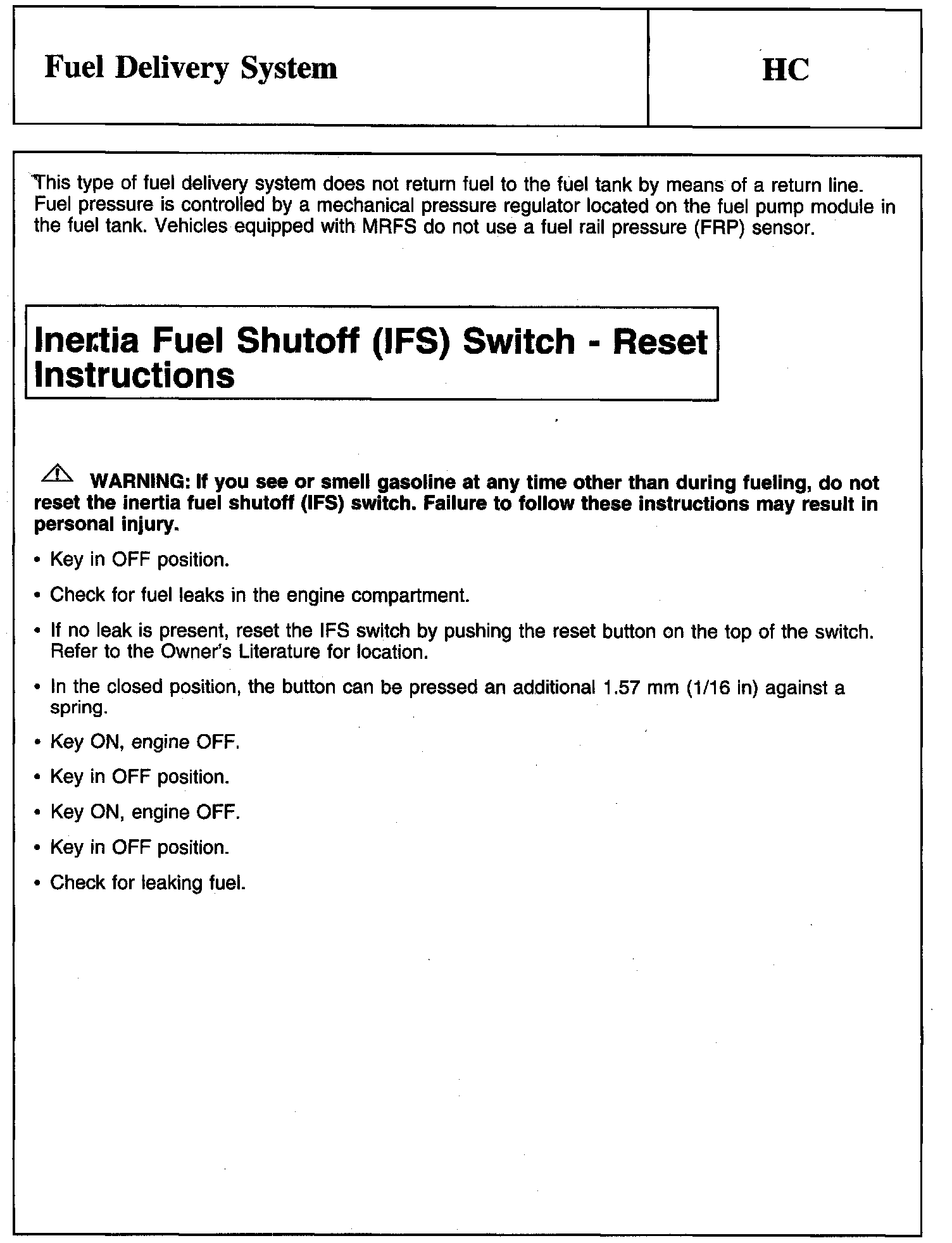 Inertia Fuel Shutoff (IFS) Switch - Reset Instructions: