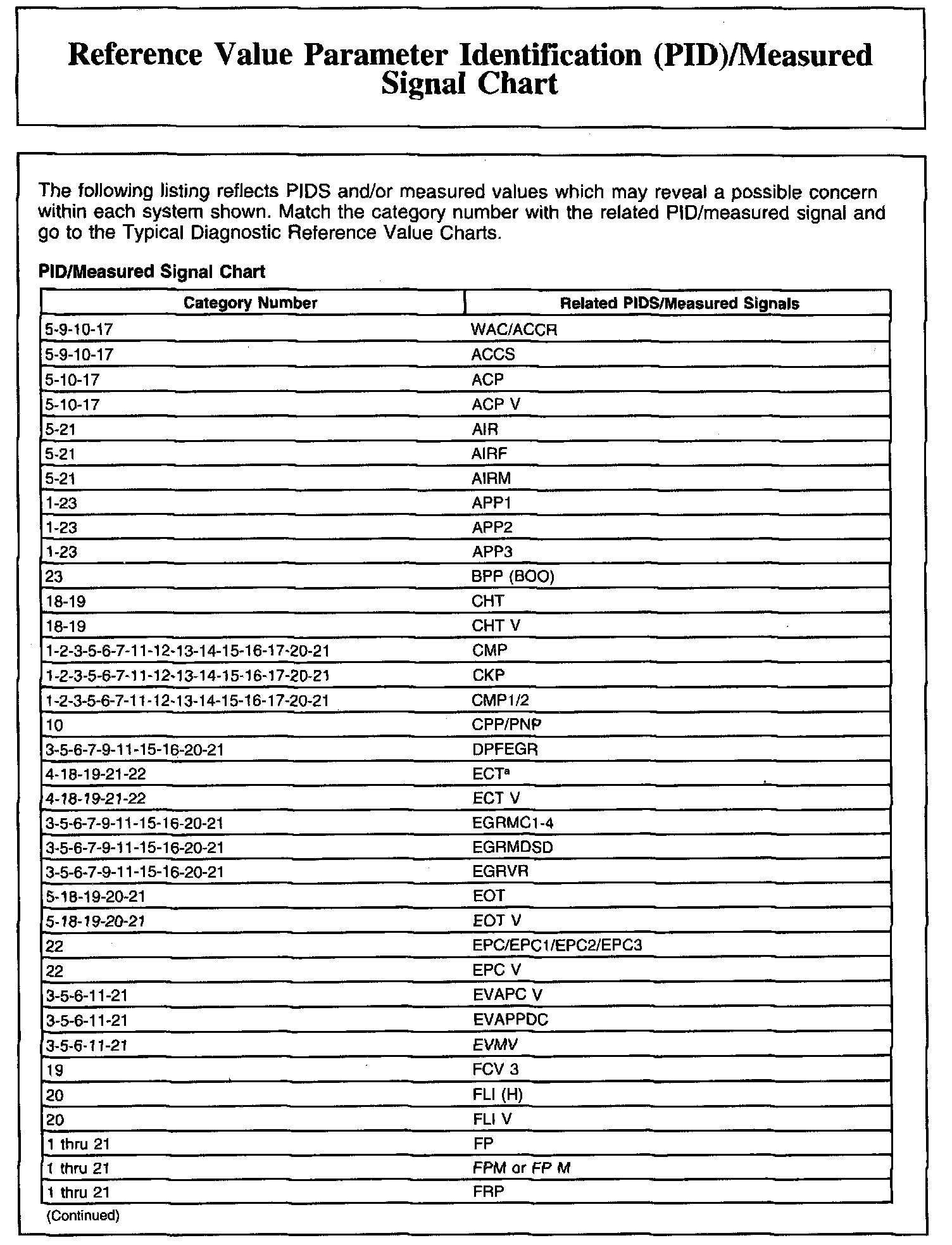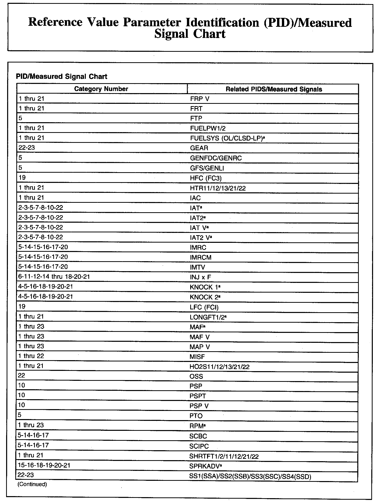 Reference Value Parameter Identification (PID)/Measured Signal Chart (Part 1):