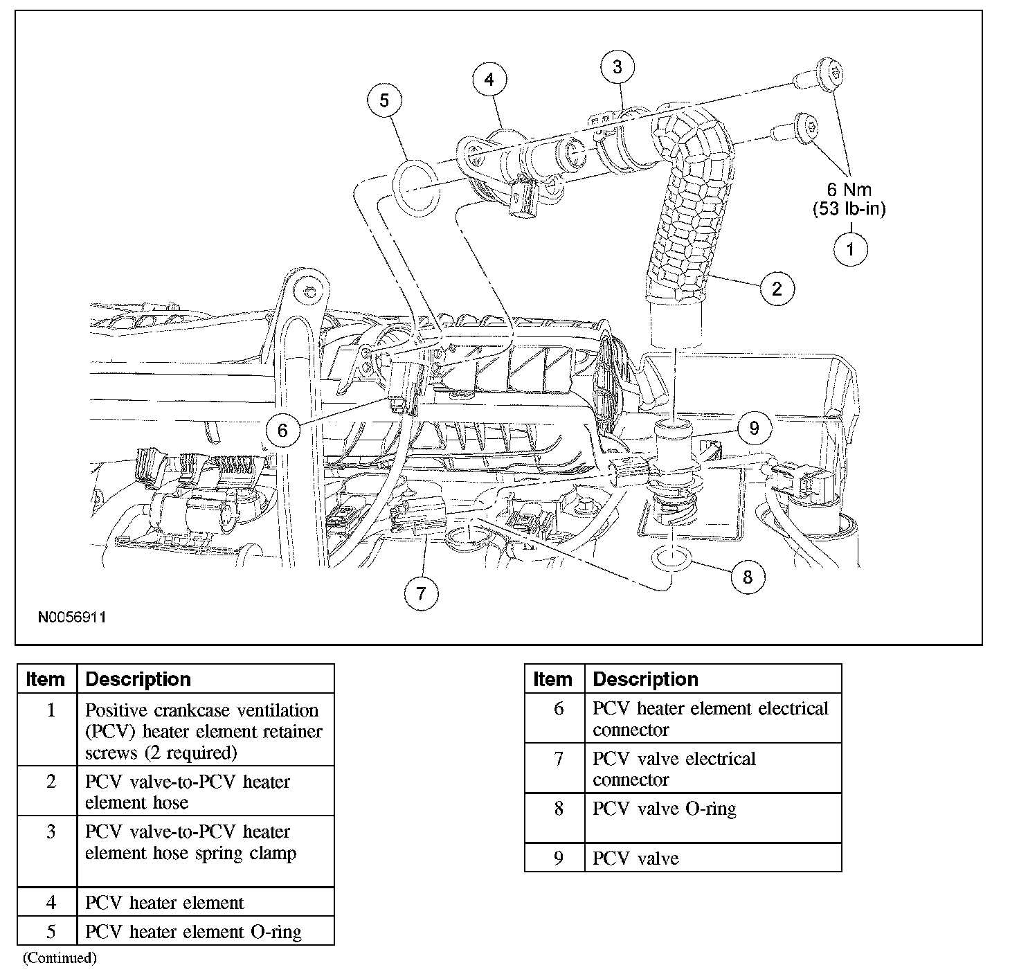 1. Disconnect the positive crankcase ventilation (PCV) heater element electrical connector.