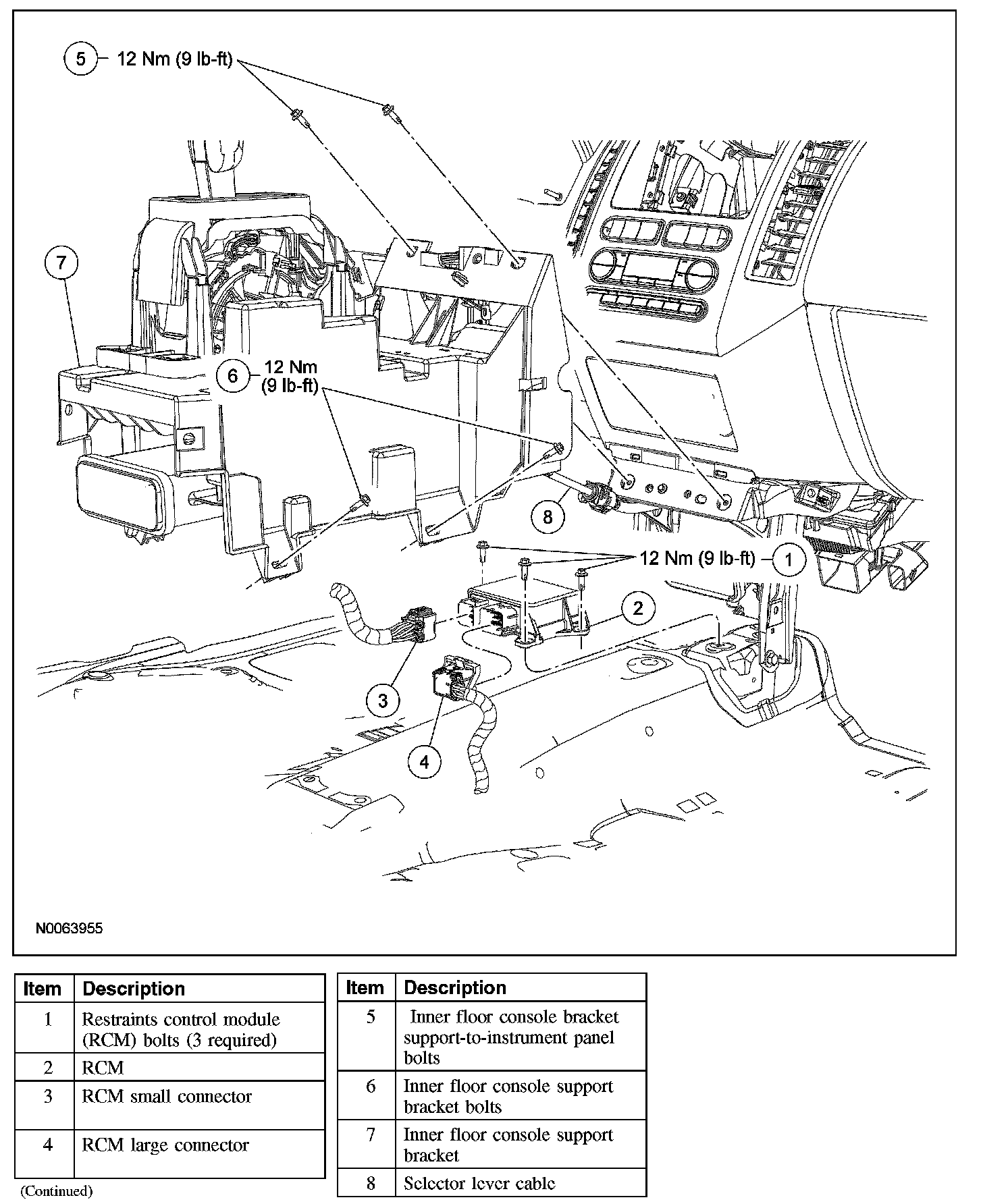 1. WARNING: The tightening torque of the air bag RCM retaining bolts is critical for correct system operation. Failure to follow this procedure may result in serious personal injury.