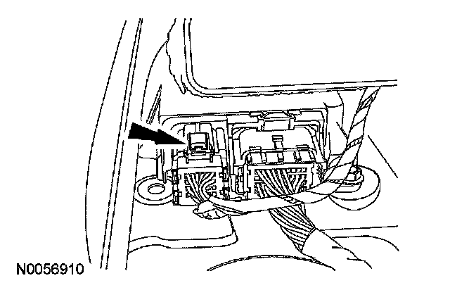10. NOTE: When installing the selector lever cable, make sure that the selector lever cable locking tabs are locked in place and the cable end is snapped onto the ball stud. Press the selector lever cable into the bracket and listen for the cable to click in place. Pull back on the selector lever cable to make sure that it is locked into the bracket. Also make sure that the selector lever cable end is correctly installed onto the ball stud. Pull back on the selector lever cable end to make sure that the cable end is correctly installed.