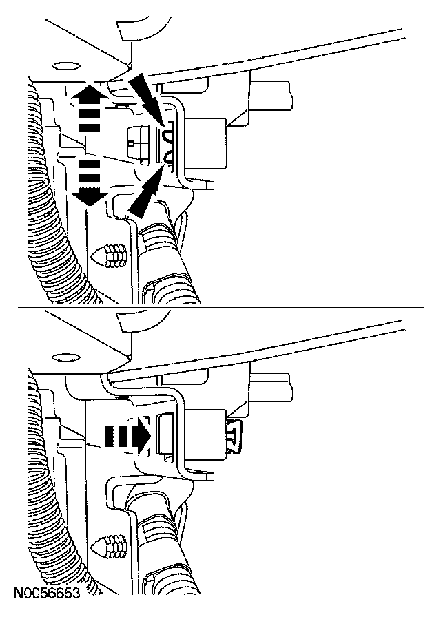 7. Slide the seat position sensor rearward to release the 2 hooks from the bracket. Then remove the seat position sensor.