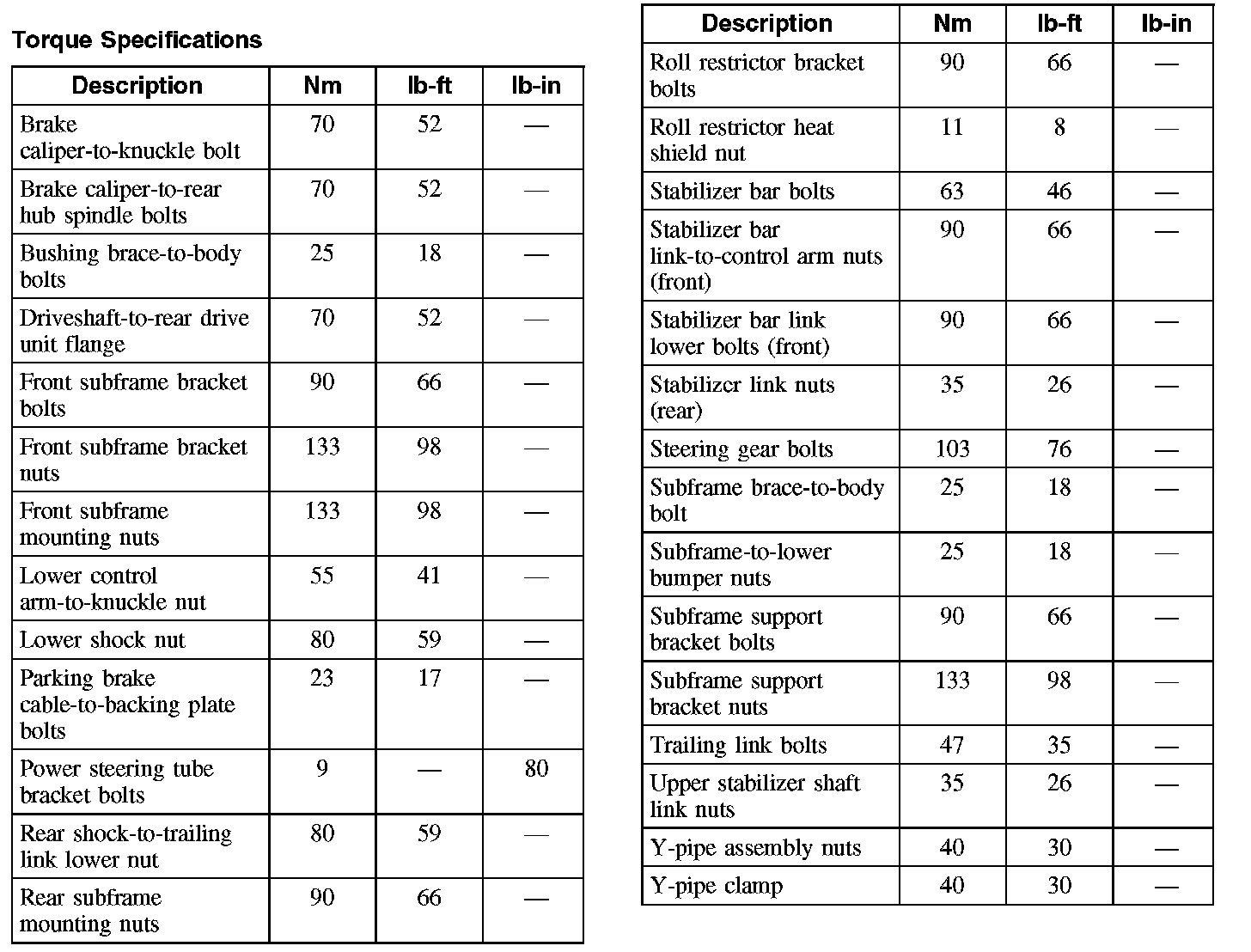 Torque Specifications: