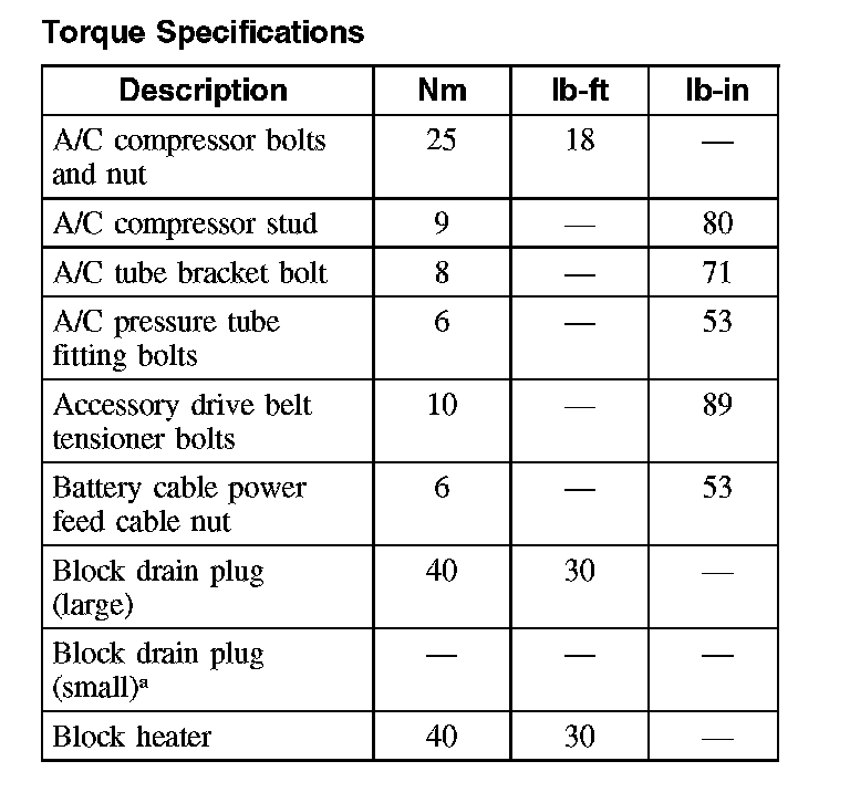 Torque Specifications (Part 1):