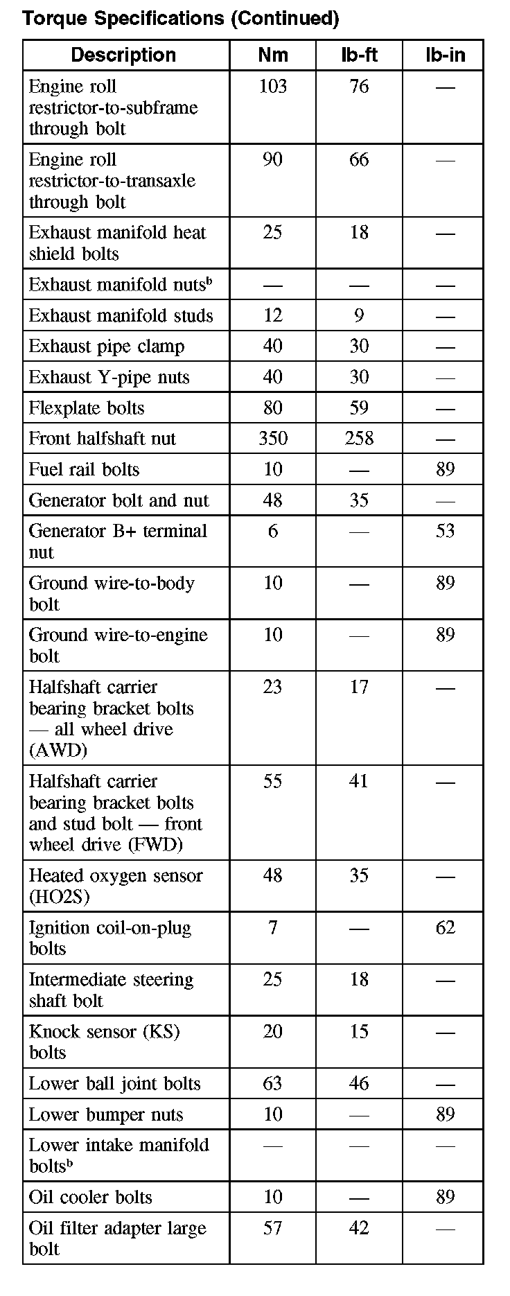 Torque Specifications (Part 4):