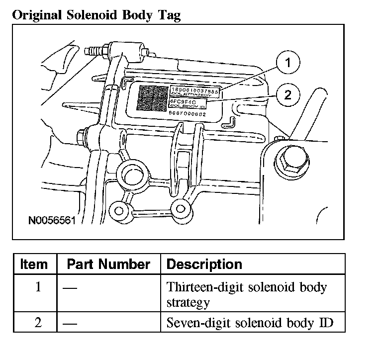 When servicing the solenoid body, use the identification tag located on top of the transaxle case.