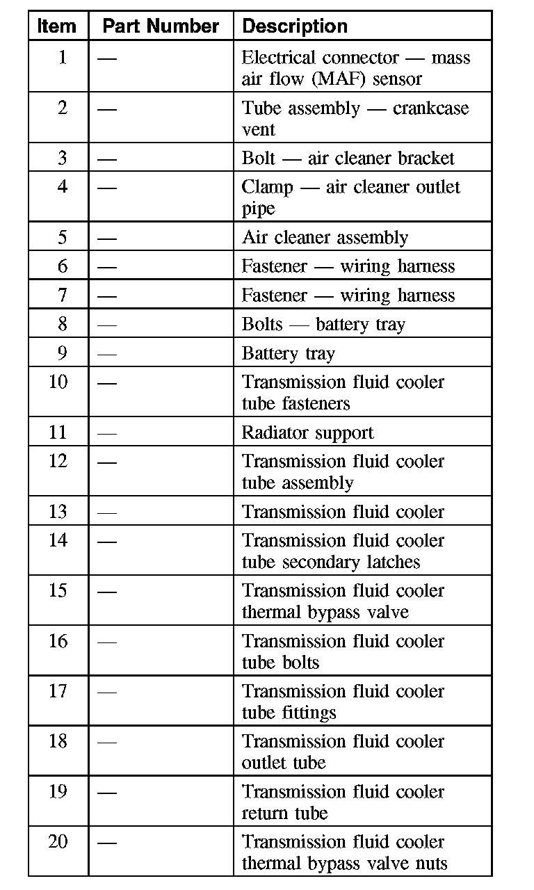 10. Disconnect the transmission fluid cooler tube fasteners from the radiator support.