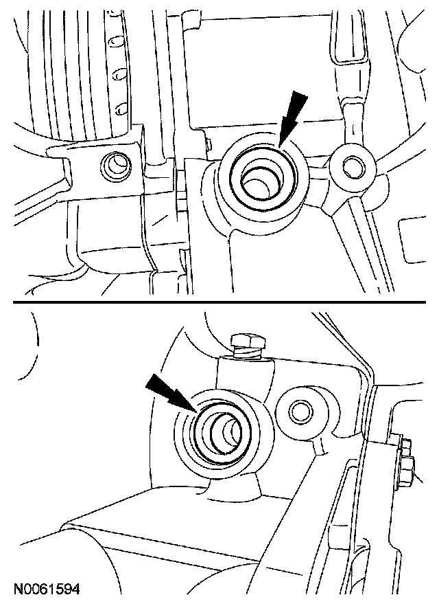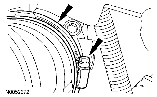 17. Inspect the transaxle case to be sure that the transmission fluid cooler tube seals and backing rings were removed with the transmission fluid cooler tubes and are not stuck in the transaxle case. If the transmission fluid cooler tube seals or backing rings are stuck in the transaxle case, remove the seals and backing rings.