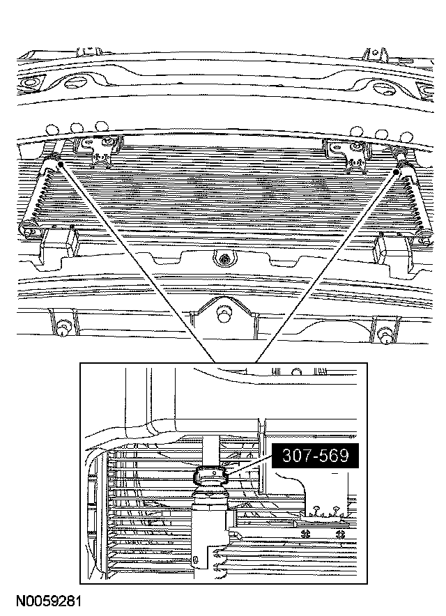 Pull up on the tabs on both sides of the radiator support, position the radiator back and remove the transmission fluid cooler tubes from the cooling module.