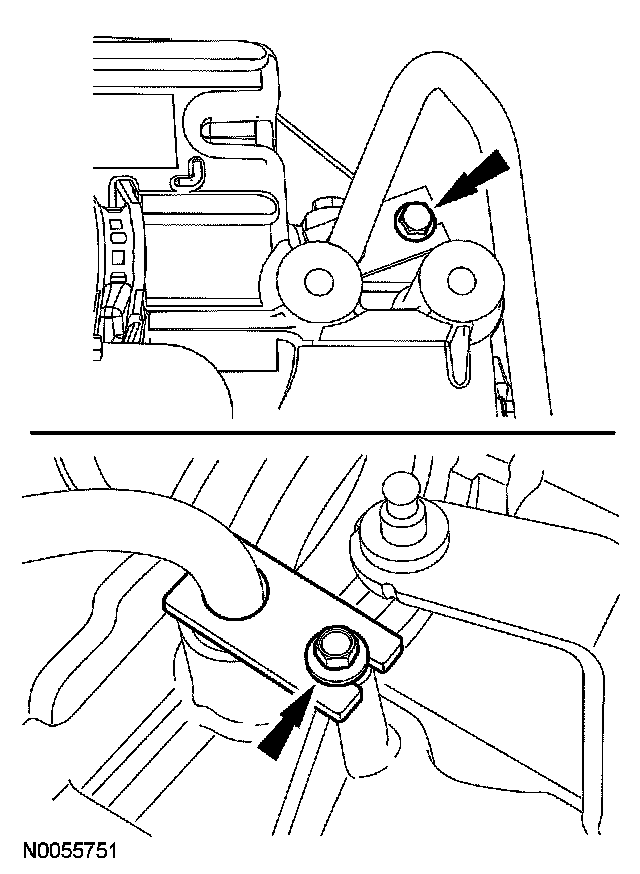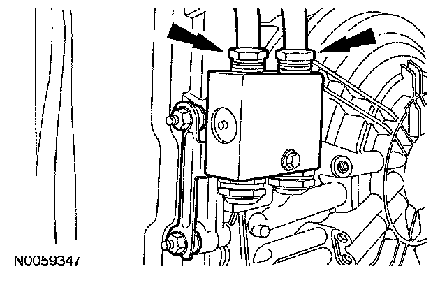 1. Position the transmission fluid cooler thermal bypass valve in place and install the 2 nuts.