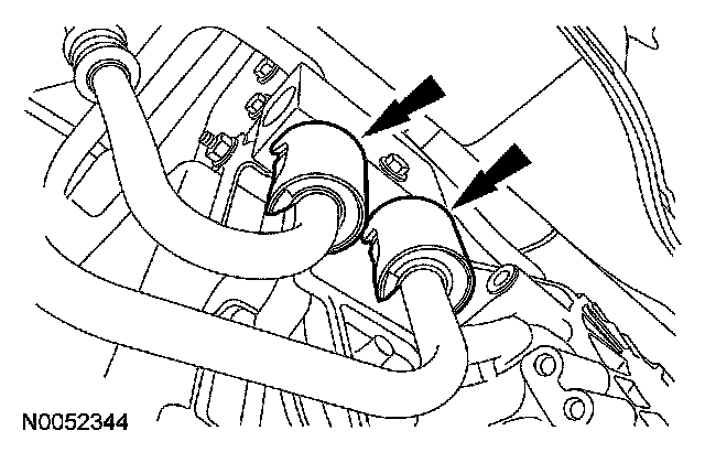 7. Install the 2 secondary latches on the transmission fluid cooler tubes at the transmission fluid cooler thermal bypass valve.