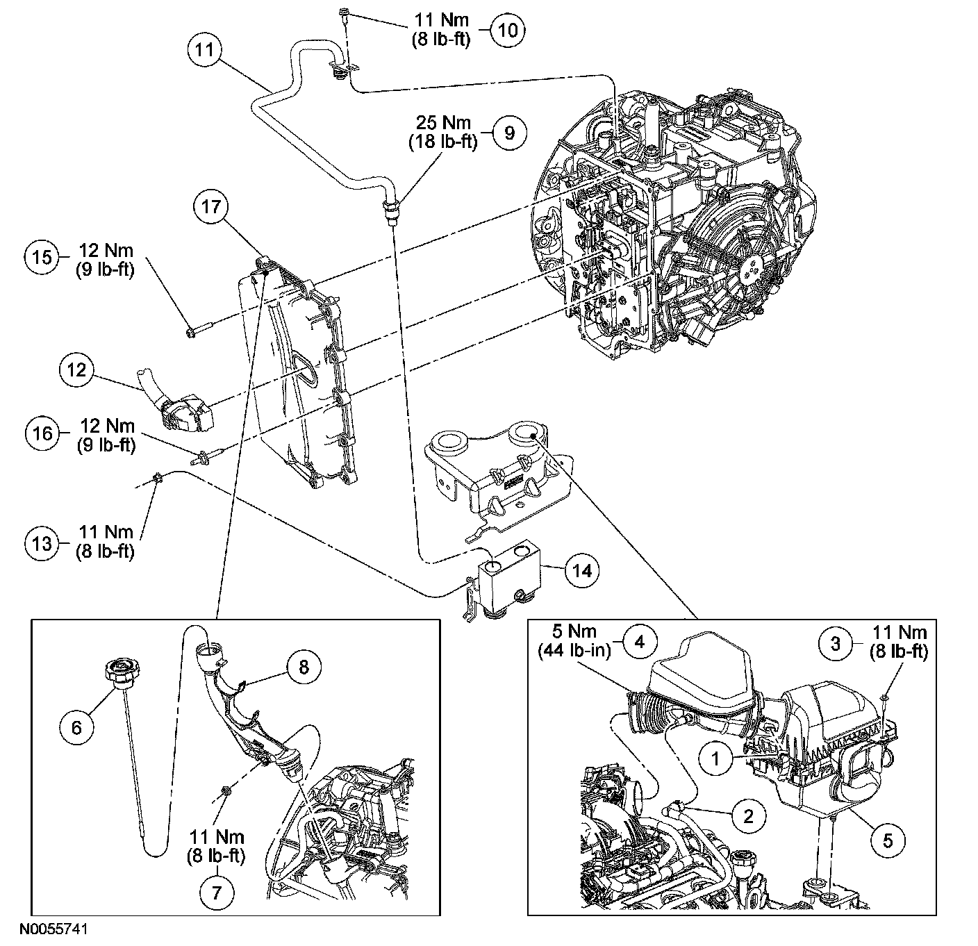 17. Fill with clean automatic transmission fluid to the correct level.