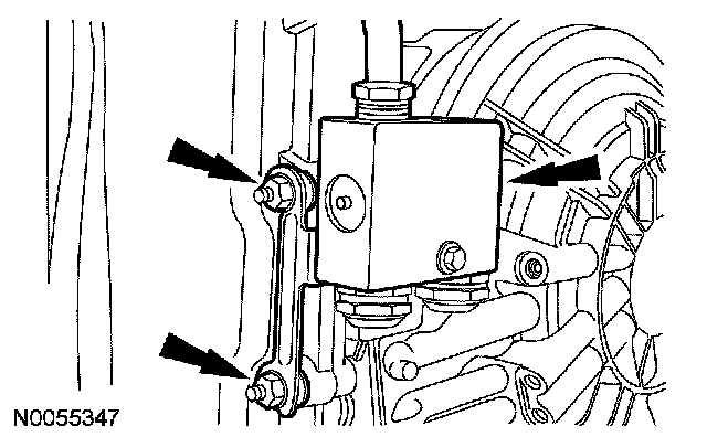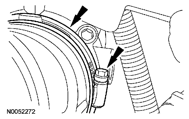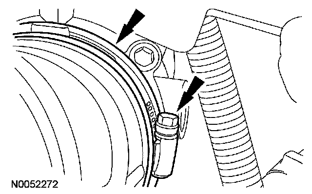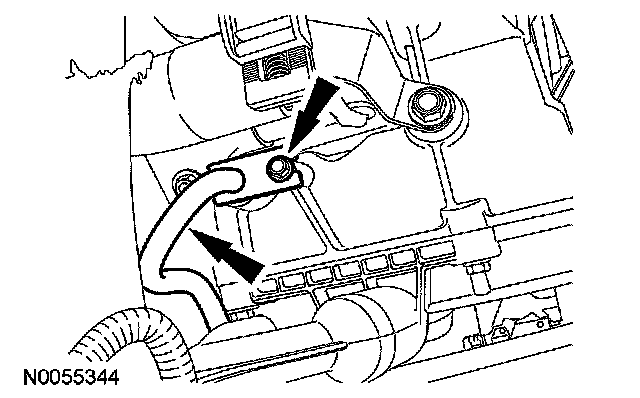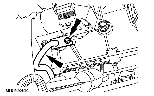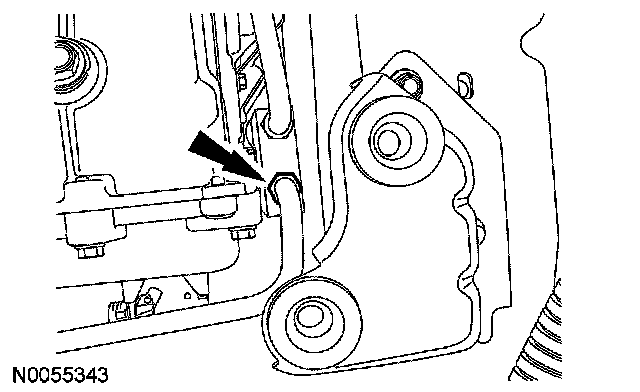 7. Position the transmission fluid cooler tube in place and install the bolt.