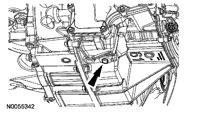 7. Remove the transmission fluid drain plug and allow the transmission fluid to drain.
