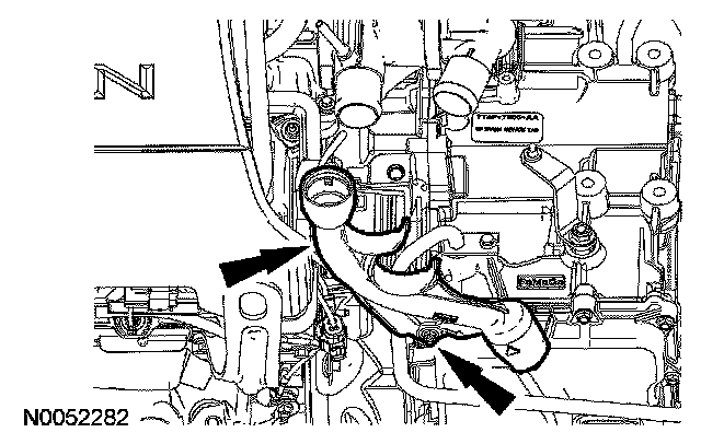 11. Route the coolant hoses in the transmission fluid filler tube.