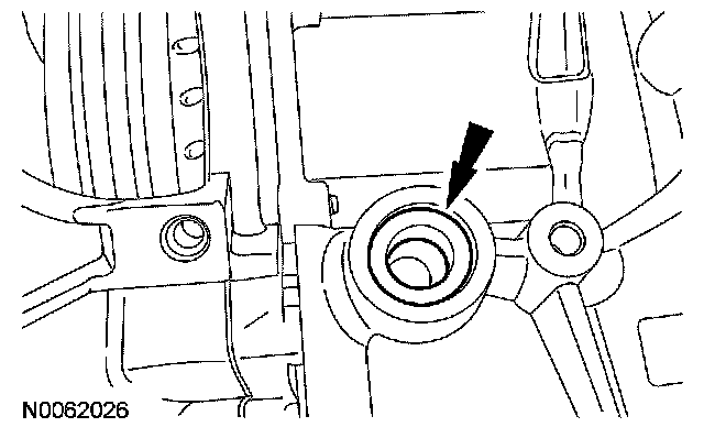 14. Inspect the transaxle case to make sure that the transmission fluid cooler tube seal and backing ring were removed with the transmission fluid cooler tube and are not stuck in the transaxle case. If the transmission fluid cooler tube seal or backing ring are stuck in the transaxle case, remove the seal and backing ring.