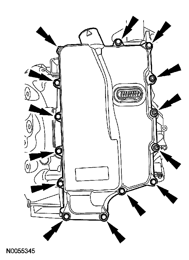 2. CAUTION: Inspect the 20 pin solenoid body connector seal to make sure that the seals is on the inside of the main control cover. Transmission fluid leak will occur.