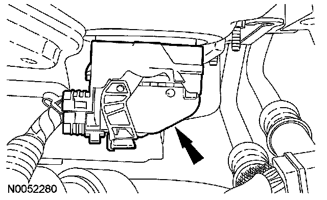 2. Disconnect the mass air flow (MAF) sensor electrical connector and the wiring harness fastener from the air cleaner assembly.