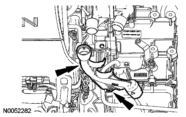 11. NOTE: The coolant hoses have been removed for clarity.
