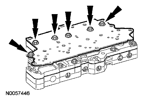 3. Position a new lower valve body separator plate and gasket on the main control valve body.