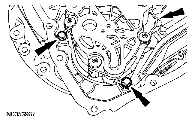 40. CAUTION: Carefully pry on opposite sides of the transaxle torque converter housing and the case to separate the torque converter housing from the case. Do not pry up on the RTV mating surfaces, damage to the mating surfaces may occur. Carefully lift the torque converter housing off the dowel pins.