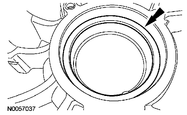 67. If the torque converter housing side transfer shaft bearing cup was removed, using a suitable tool, punch a hole in the fluid dam.