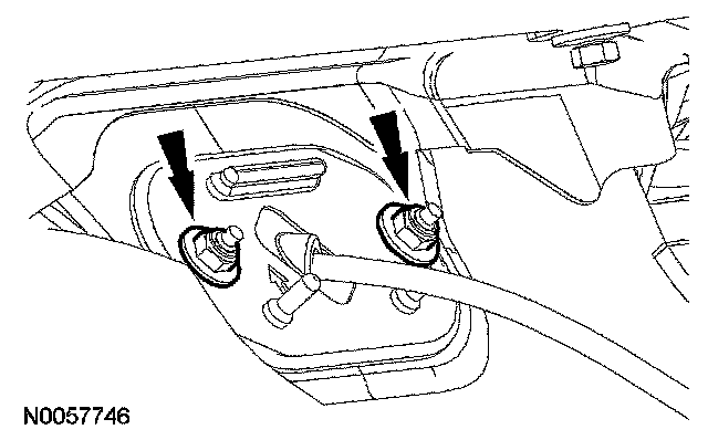 14. Remove the 2 nuts from the grommet and remove the selector lever cable.