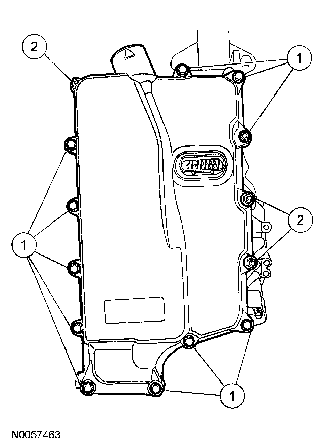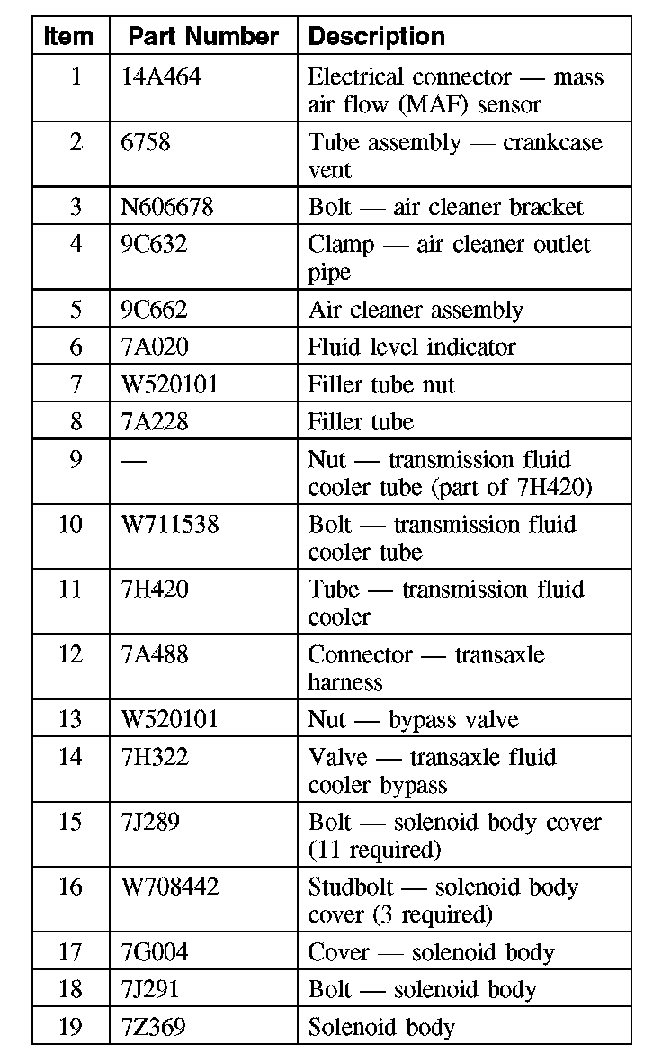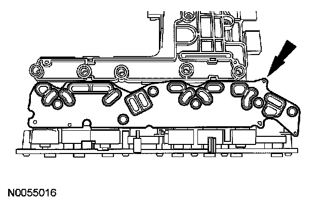 NOTE: The PCM must be updated with a new solenoid body strategy data file and solenoid body ID anytime a new solenoid body is installed. A new solenoid body service tag must be installed over the current solenoid body service tag on top of the transaxle case.