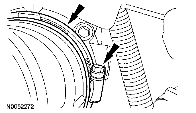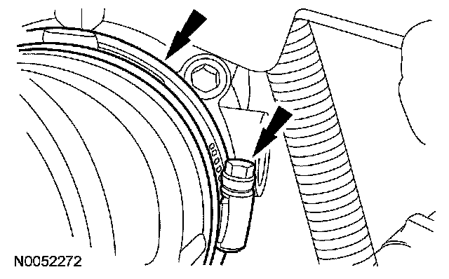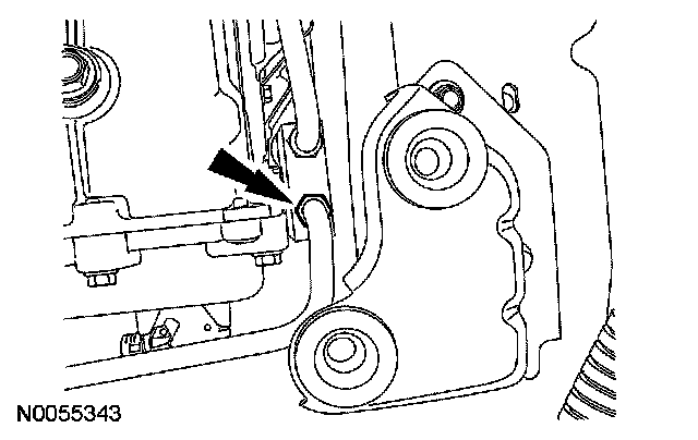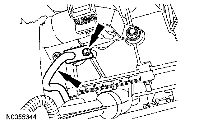 14. Position the transmission fluid cooler tube in place and install the bolt.