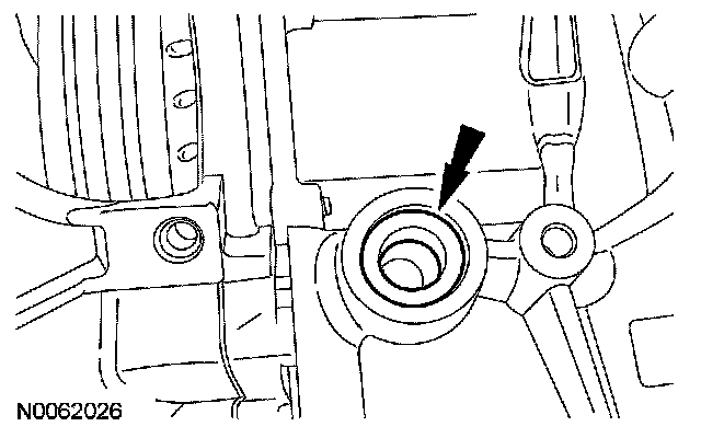 14. Inspect the transaxle case to make sure that the transmission fluid cooler tube seal and backing ring were removed with the transmission fluid cooler tube and are not stuck in the transaxle case. If the transmission fluid cooler tube seal or backing ring are stuck in the transaxle case, remove the seal and backing ring.