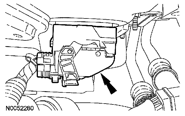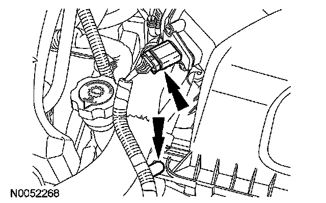 2. Disconnect the mass air flow (MAF) sensor electrical connector and the wiring harness fastener from the air cleaner assembly.