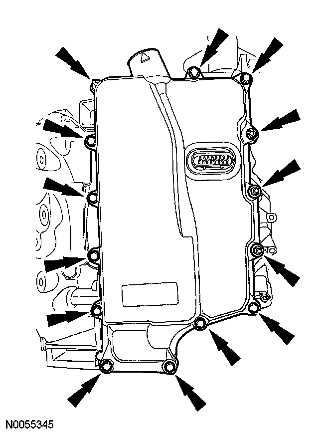 8. CAUTION: Inspect the 20 pin solenoid body connector seal to make sure that the seals is on the inside of the main control cover. Transmission fluid leak will occur.