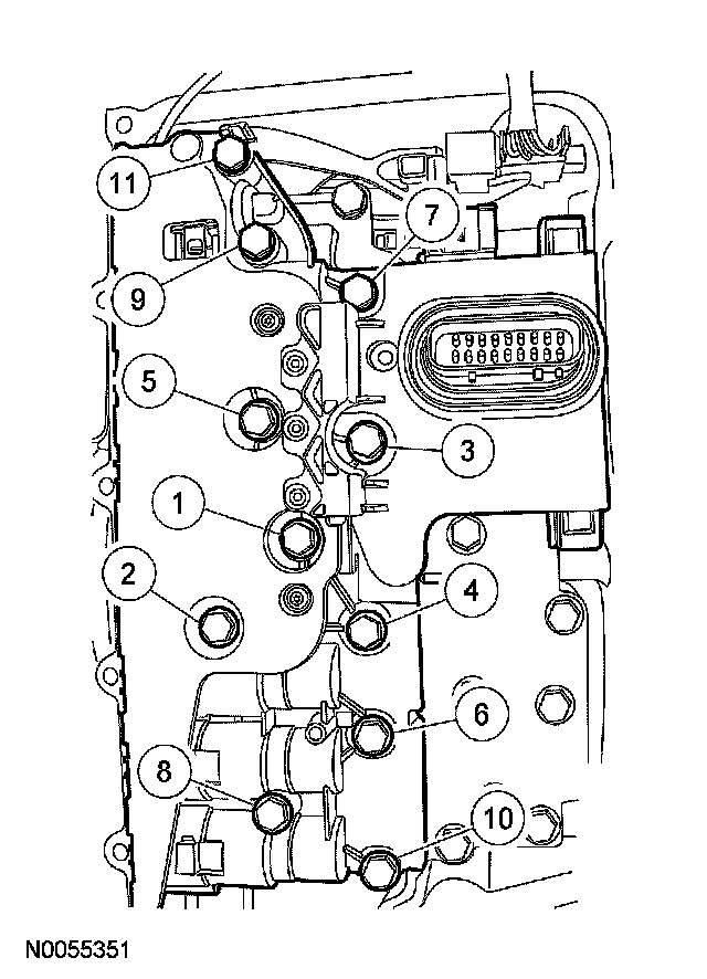 3. Tighten the solenoid body bolts in the sequence shown.
