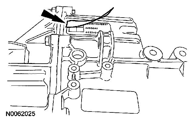 10. Wipe the surface of the existing solenoid body strategy tag on top of the transaxle case clean and install the new solenoid body strategy tag (supplied with the solenoid body service kit) over it.