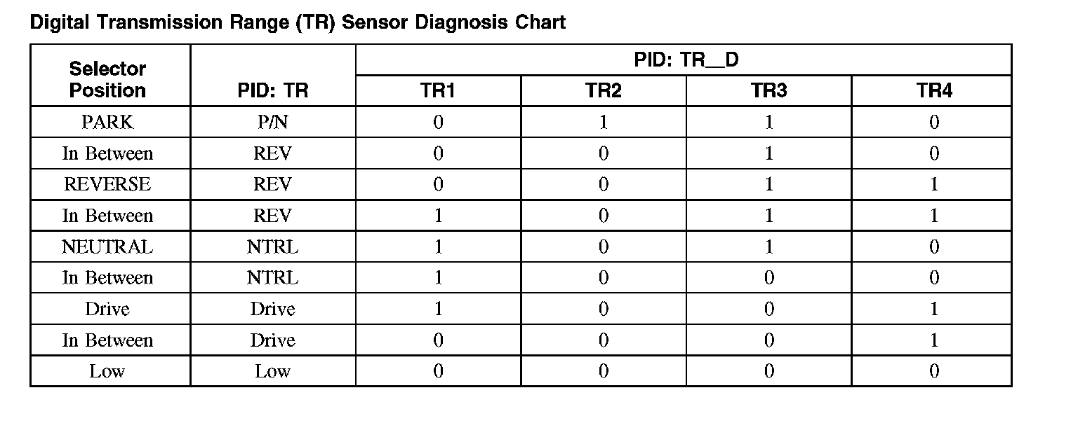 Digital Transmission Range (TR) Sensor Diagnosis Chart:
