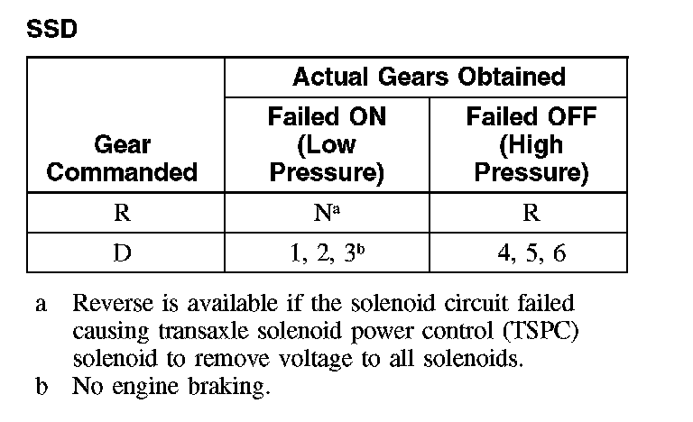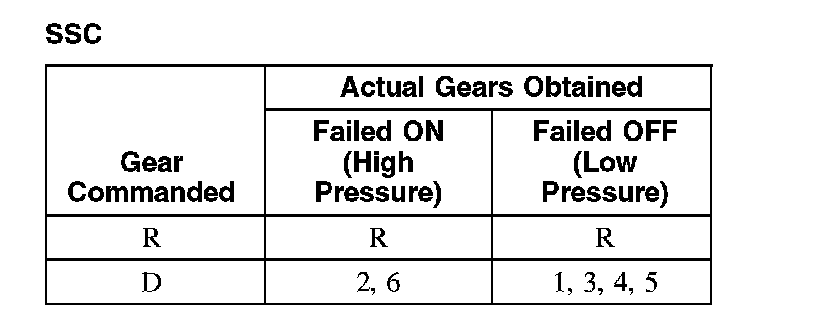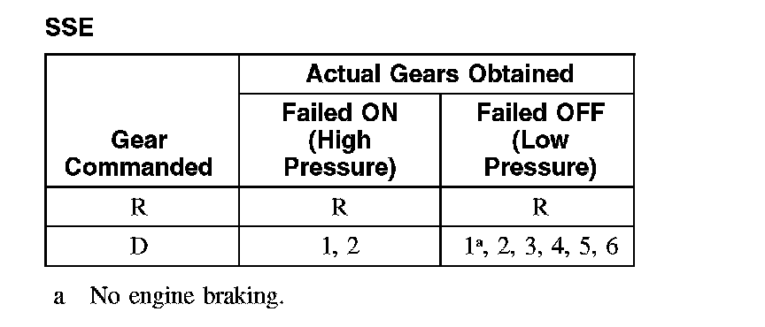 Shift Solenoid Failure Mode Chart "Failed ON" or "Failed OFF"