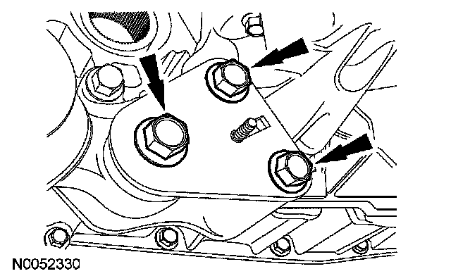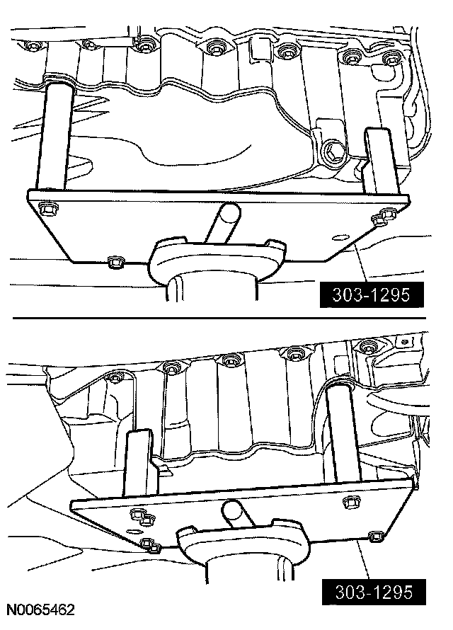 15. CAUTION: The special tool must be carefully aligned to the mounting bosses on the oil pan. Failure to follow these instructions may result in damage to the oil pan.