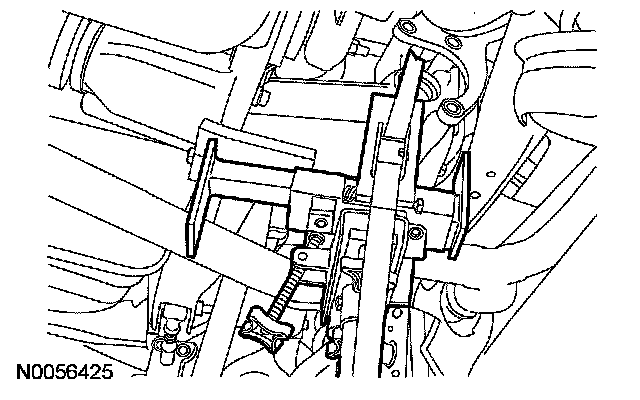 7. Loosen the LH front insulator bracket-to-subframe bolt, and rotate the bracket aside.