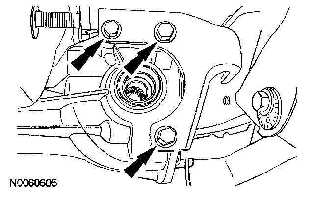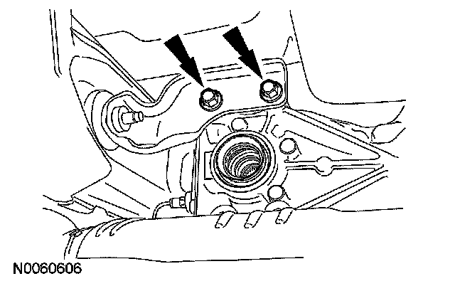 10. Remove the 3 LH side insulator or bracket-to-rear axle differential bolts.