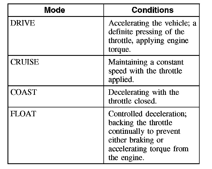 The road test form lists 4 operating conditions or modes in which some axle noises come and go: DRIVE, CRUISE, COAST and FLOAT.