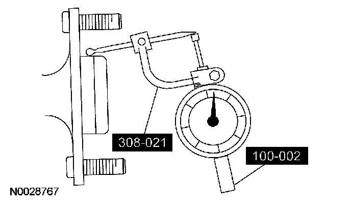 1. Position the special tools as close to the hub face as possible. Zero the indicator to allow the pointer to deflect either way.