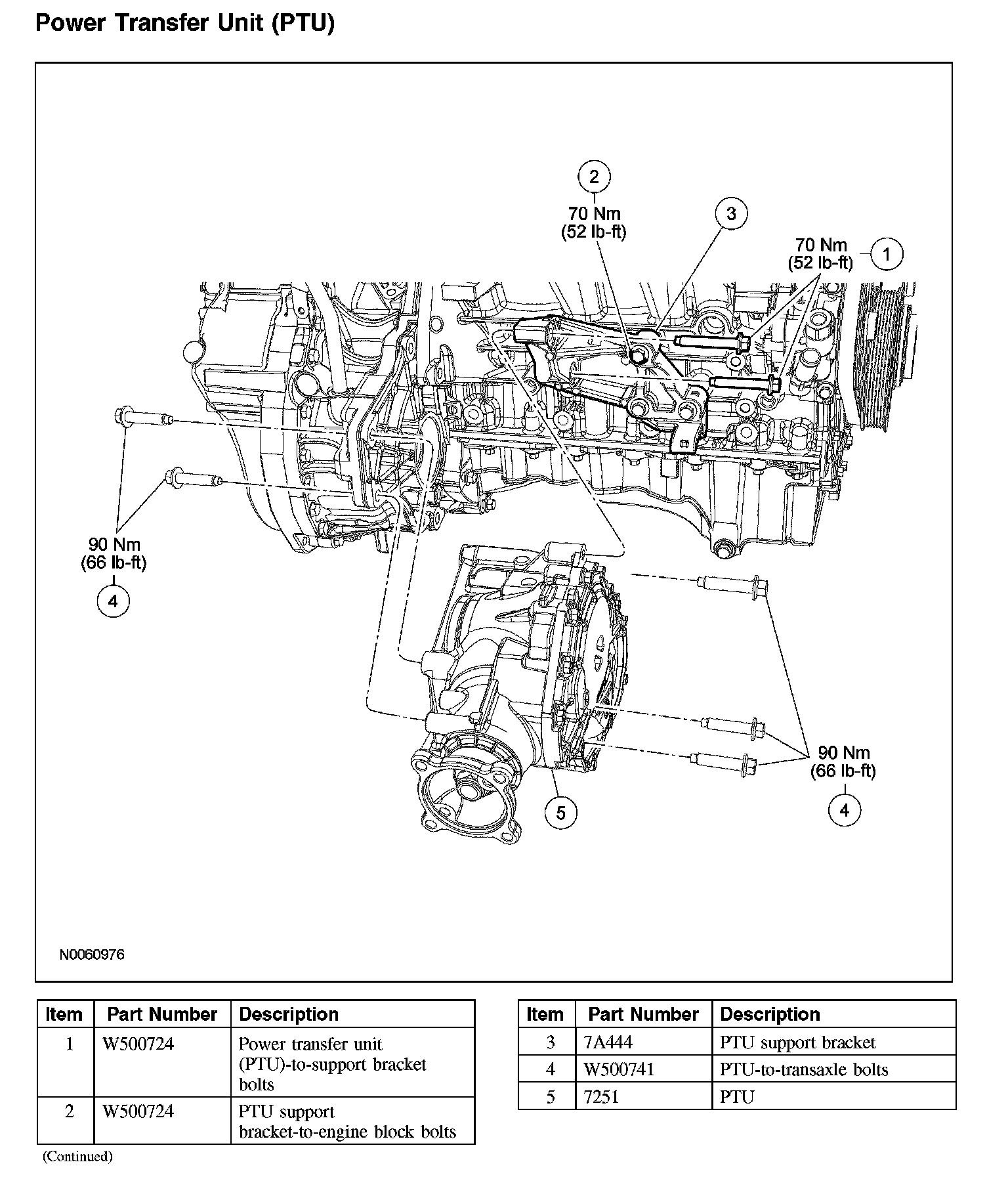 Position the power transfer unit (PTU) to the transaxle. Install the 5 PTU-to-transaxle bolts.