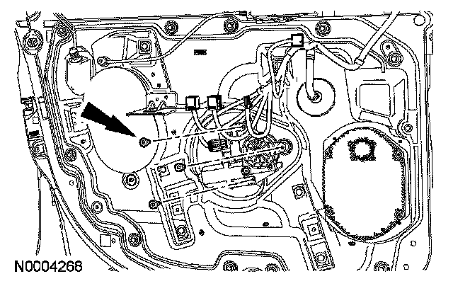 - Front door window motor removal shown, rear door window motor removal similar.