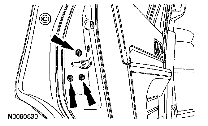 9. Remove the 2 bolts from the electrical harness grommet to the door.
